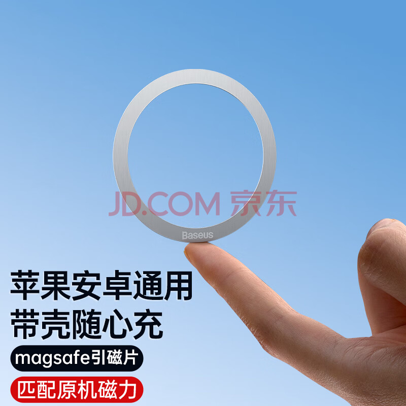 商品相册:倍思 【两片装】无线充电磁吸贴片引磁环车载手机支架环型磁铁背贴吸盘 通用苹果14/13华为小米 银第