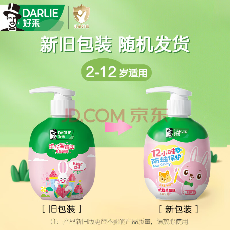 商品相册:DARLIE好来(原黑人)按压式儿童牙膏2-12岁草莓味120g青少年抗糖酸防蛀第