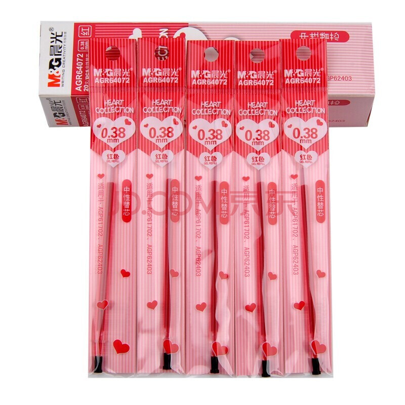 商品相册:晨光(M&G)中性笔芯AGR64072文具红色中性笔替芯 全针管签字笔芯 简约水笔替换芯 0.38mm 20装第