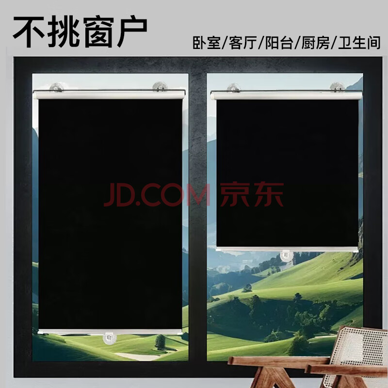 商品相册:富居全遮光窗帘隔热防晒浴室防窥帘免打孔吸盘伸缩式卷帘40*125cm黑第