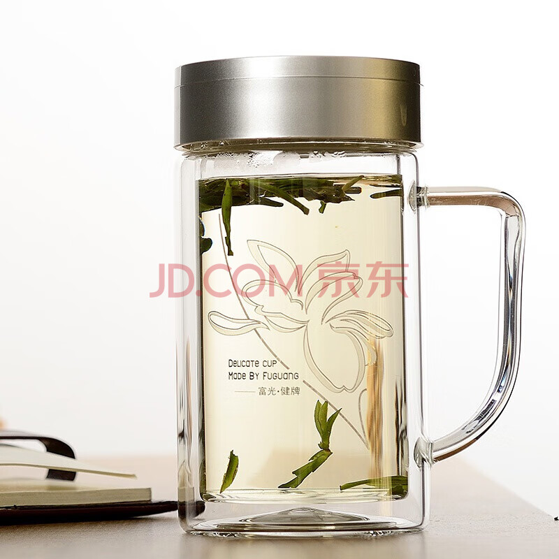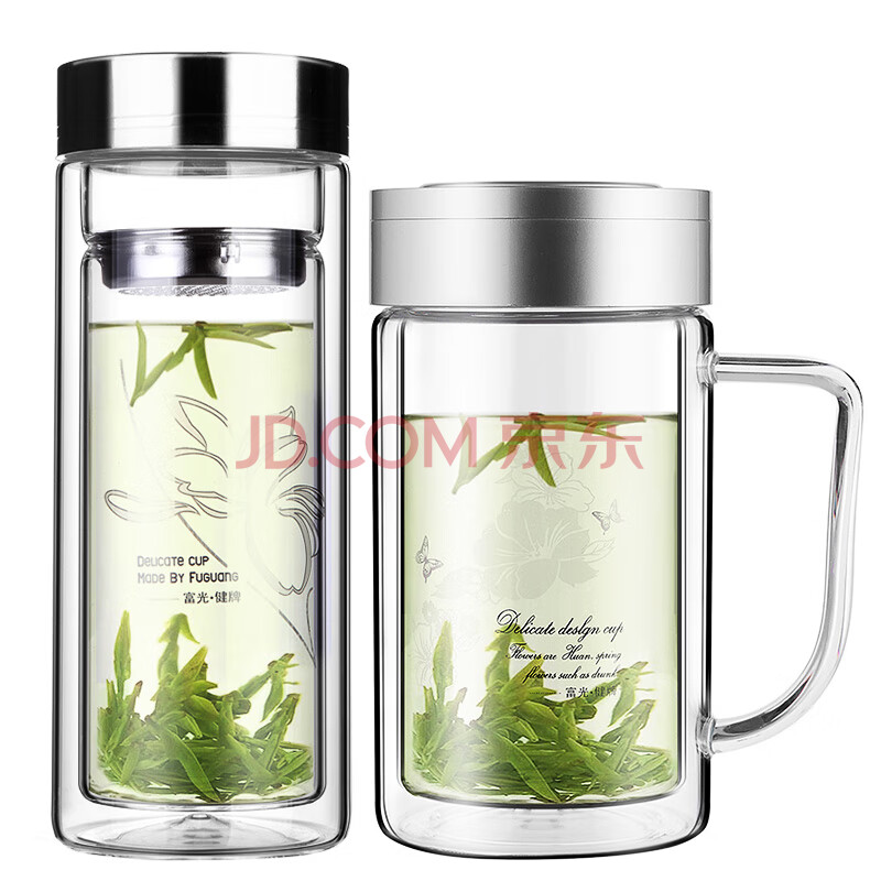 商品相册:富光 320ML+320ML双层多用泡茶杯 耐热玻璃杯带把水杯子(2只装)第