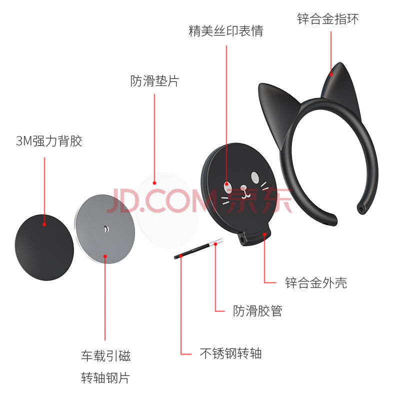 商品相册:孜泰 手机支架指环扣 桌面懒人超薄卡通创意可搭车载磁吸 苹果/华为/小米/平板通用 黑色第