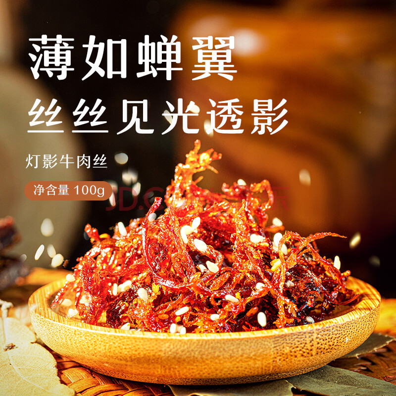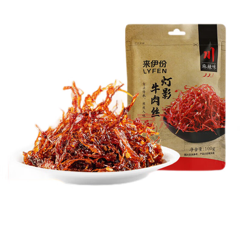 商品相册:来伊份灯影牛肉丝麻辣味100g四川特产解馋手撕肉干肉脯即食小吃休闲零食第