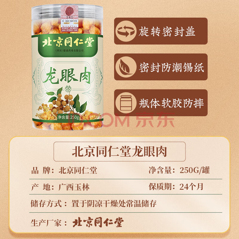 商品相册:朕皇同仁堂养生茶桂圆肉正宗桂圆干龙眼肉无核无熏硫去皮煲汤泡茶250g第1张/共7