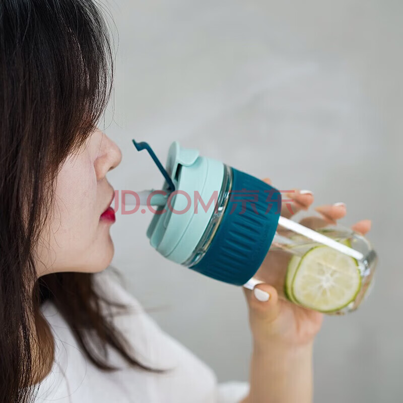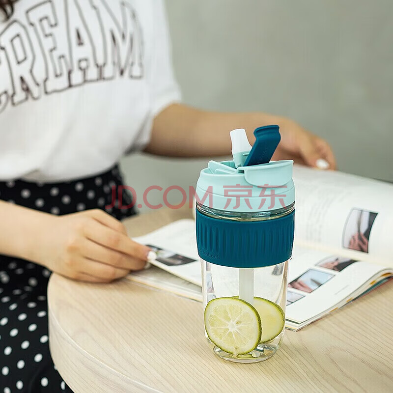 商品相册:乐扣乐扣(LOCK&LOCK)咖啡杯耐热玻璃水杯子男女学生便携式双饮吸管杯随手杯500ML绿色第