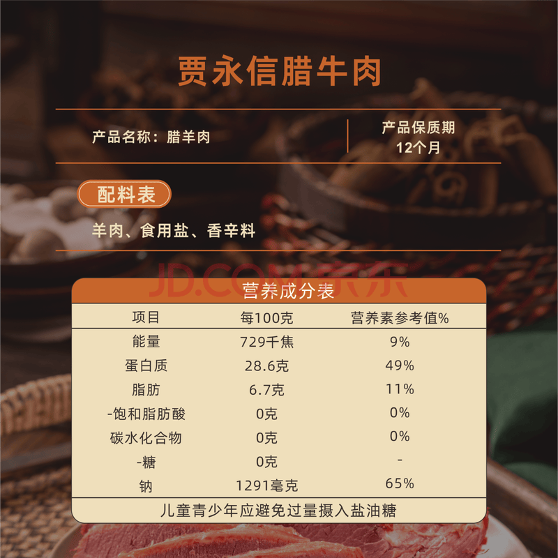 商品相册:贾永信腊牛羊肉年货礼盒800g陕西西安特产回民街熟食腊卤味中华老字号第1张/共7