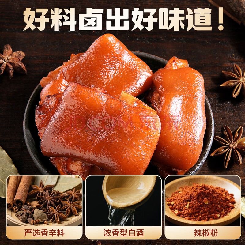 商品相册:百草味猪蹄卤香味150g 即食休闲食品酱卤熟食肉类零食猪脚下酒菜第
