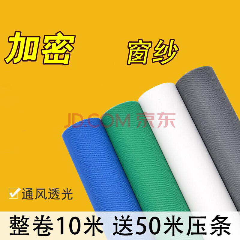 商品相册:铁骥 纱窗网门帘家用窗户加密加厚窗纱带压条尼龙防尘门窗网 白色32目加密型2*300m/捆第