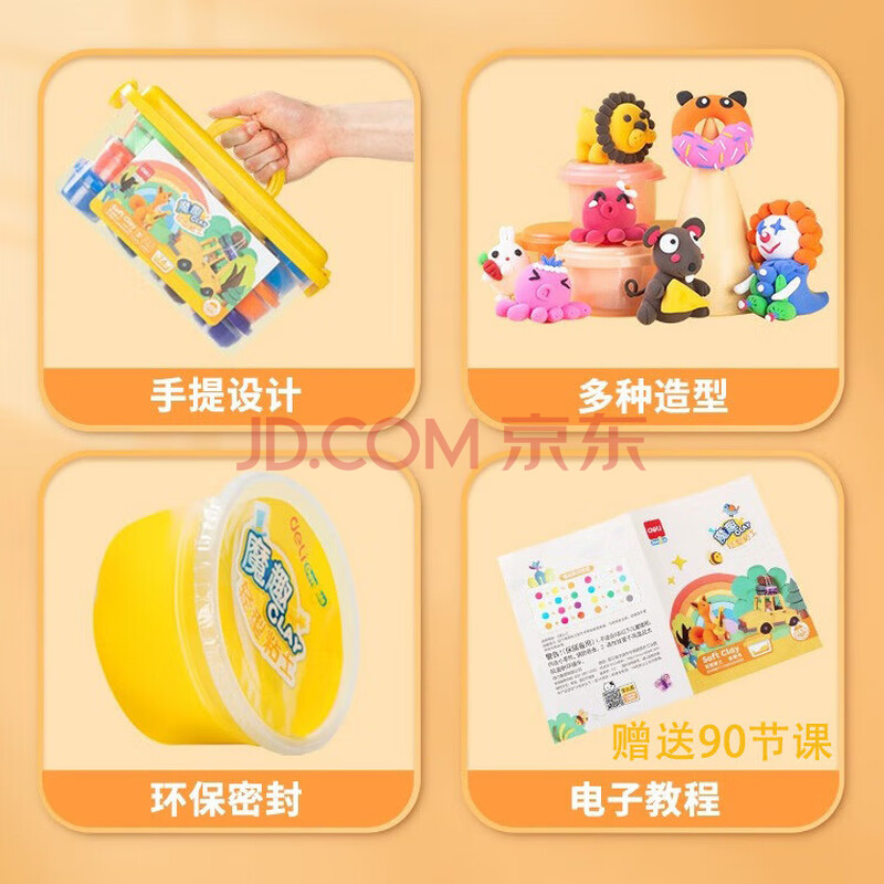 商品相册:得力儿童24色超轻粘土DIY橡皮泥非彩泥套装玩具男女孩节日生日礼物第