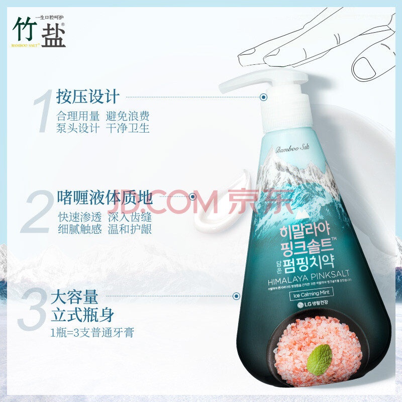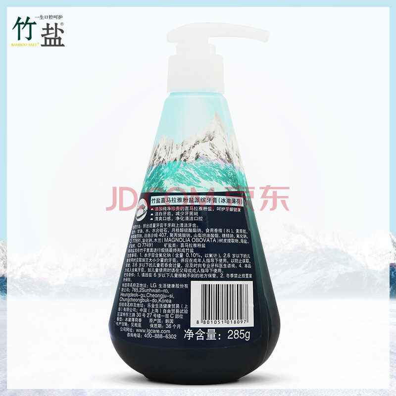 商品相册:竹盐LG按压式牙膏粉盐285g*1瓶冰澈薄荷减轻牙渍第