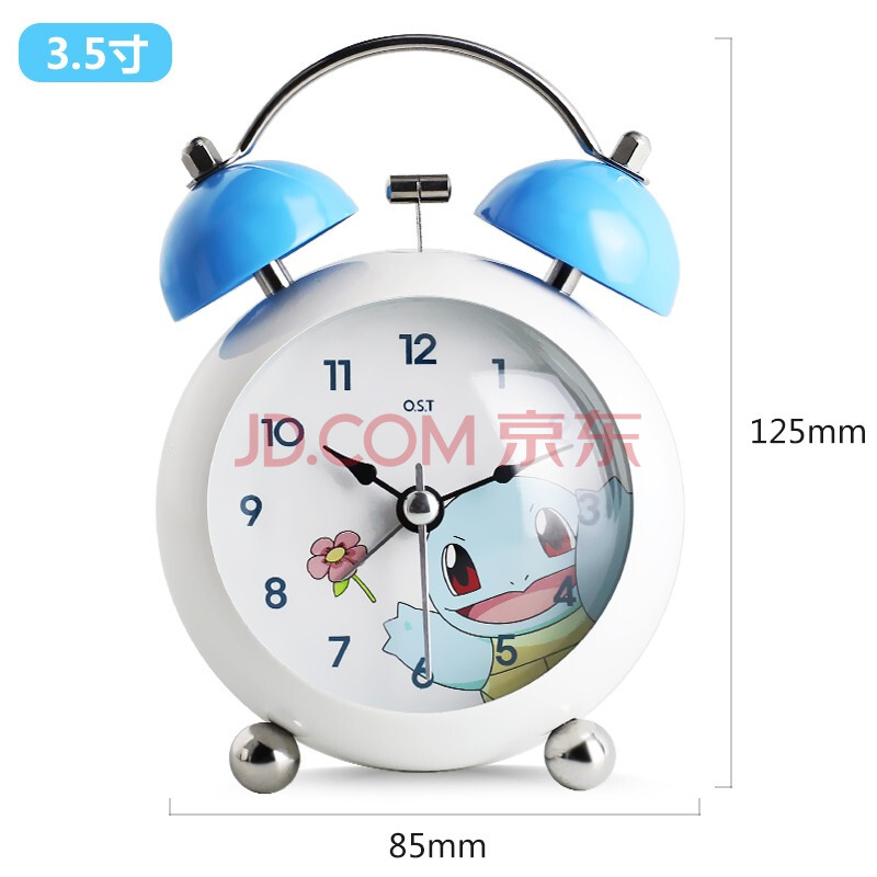 商品相册:码仕闹钟创意学生卧室儿童夜光床头钟机械球面打铃闹钟QM-02蓝色开学季礼物第