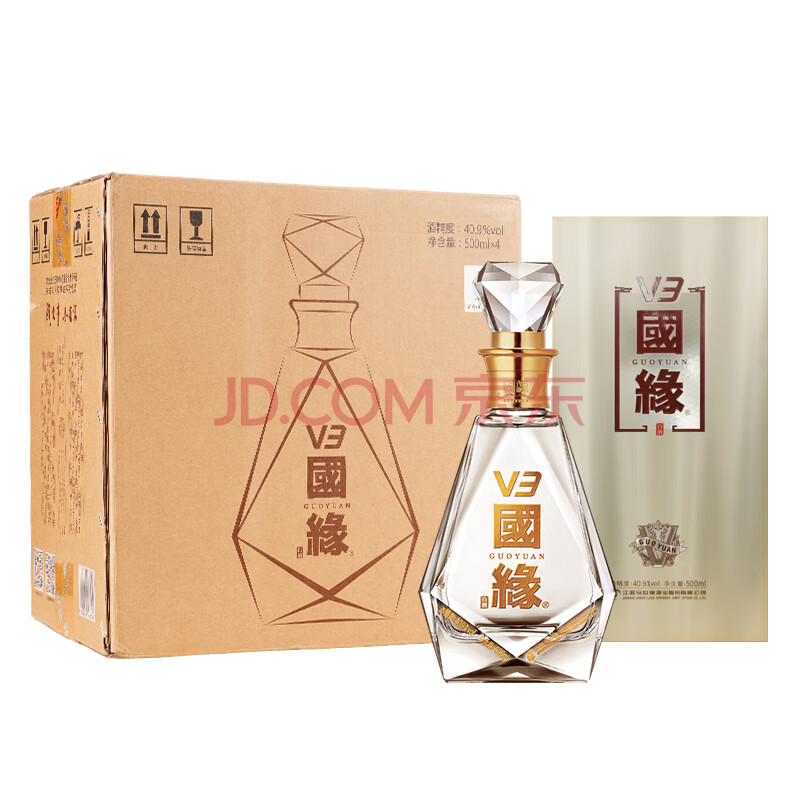 商品相册:今世缘国缘V3 浓香型白酒 40.9度 500ml*4瓶 整箱装【热销商品】第