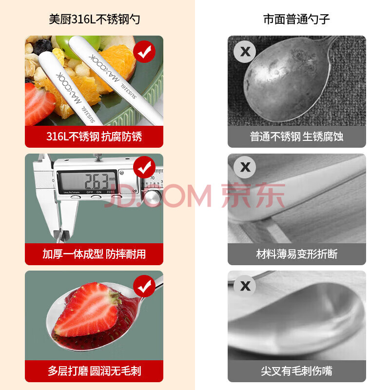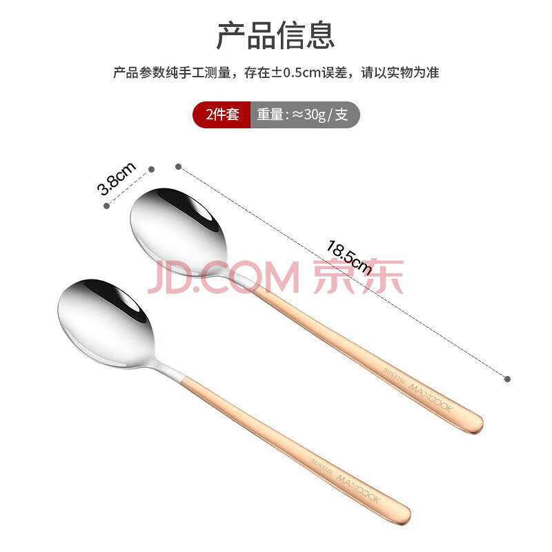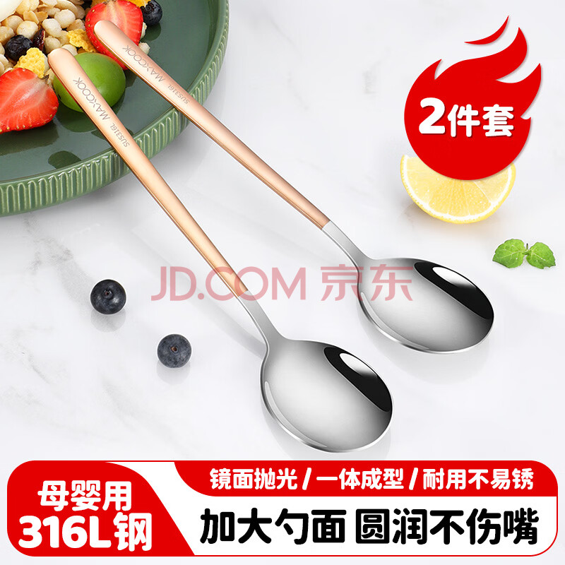 商品相册:美厨(maxcook)316L不锈钢汤勺汤匙 加大勺子餐勺饭勺调羹 2件套玫瑰金MCGC0224第