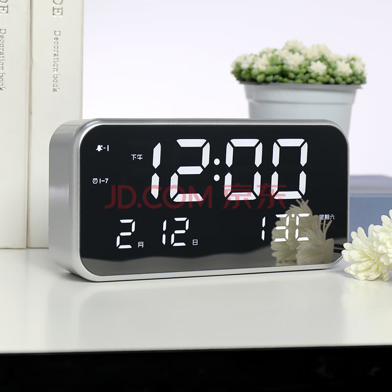 商品相册:汉时(Hense)大屏电子闹钟桌面时钟床头台钟儿童学生闹表HA801银色旗舰版开学季第