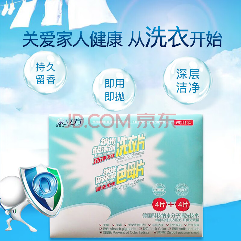商品相册:泉立方洗衣护色旅行装8片(洗衣片4+吸色片4)超浓缩洗衣纸防染色试用装第