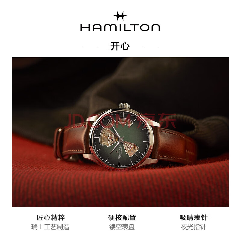 商品相册:汉米尔顿(Hamilton)爵士开心手表男款商务表40绿盘皮带镂空机械表瑞士手表男士礼物第