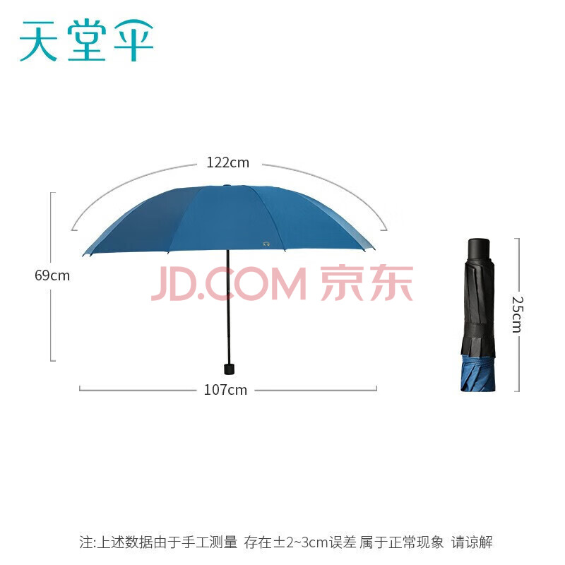 商品相册:天堂 防紫外线晴雨伞三折 太阳伞黑胶折叠三折晴雨伞 油蓝第