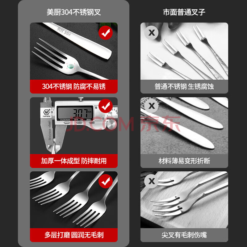 商品相册:美厨(maxcook)304不锈钢叉子 餐叉水果叉餐具套装甜品汤勺搅拌勺 4件套MCGC4513第