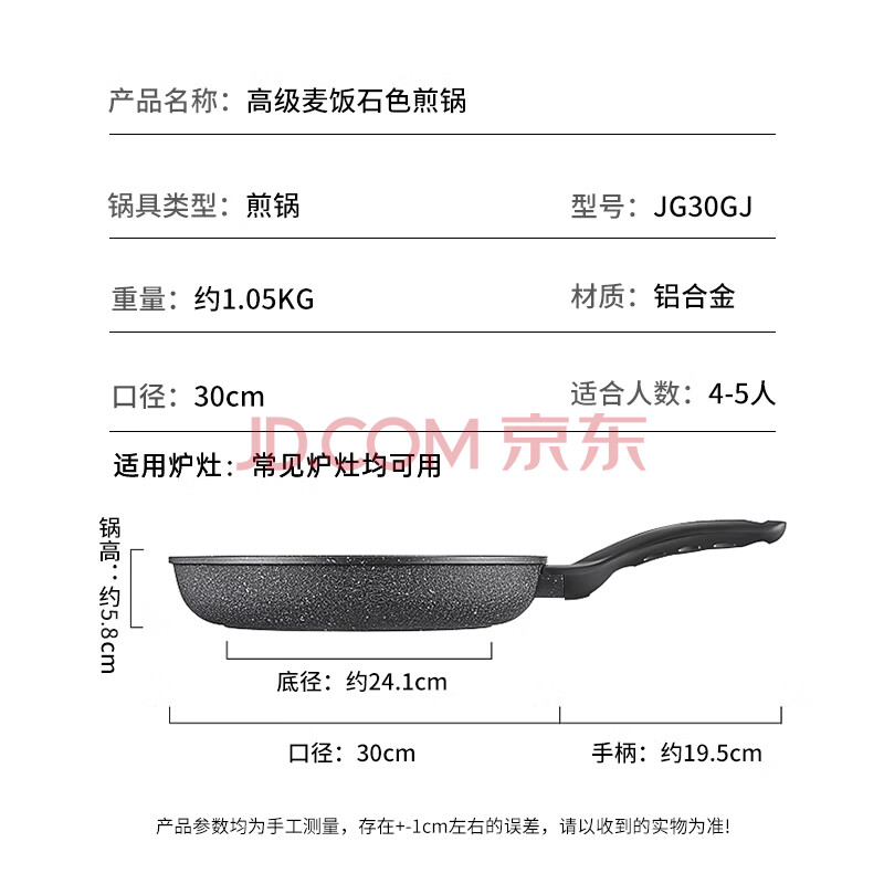 商品相册:炊大皇平底锅煎锅高级麦饭石色不粘锅煎盘30cm电磁炉通用JG30GJ第