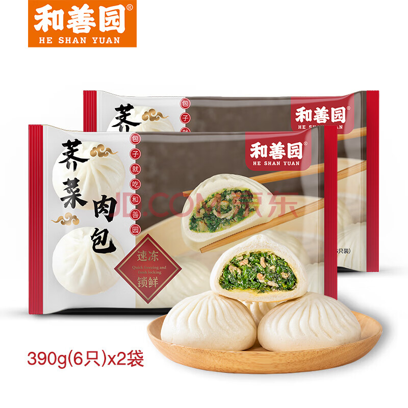商品相册:和善园 荠菜肉包 780g 12只 家庭装 早餐面点 加热即食 方便快捷第