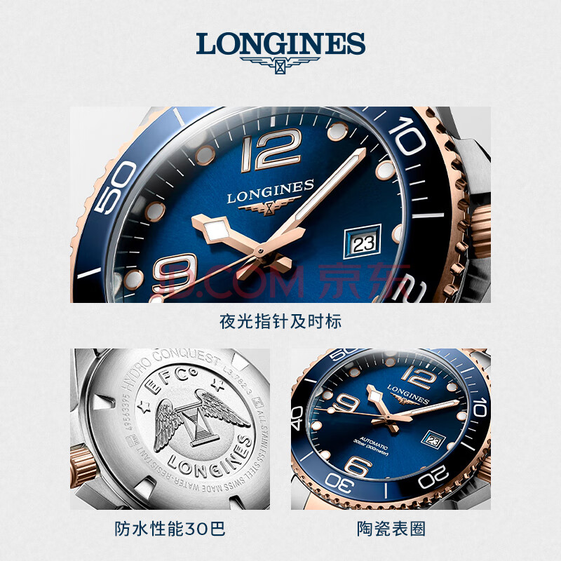 商品相册:浪琴(LONGINES)瑞士手表 康卡斯潜水系列 男士钢带机械表L37823987第