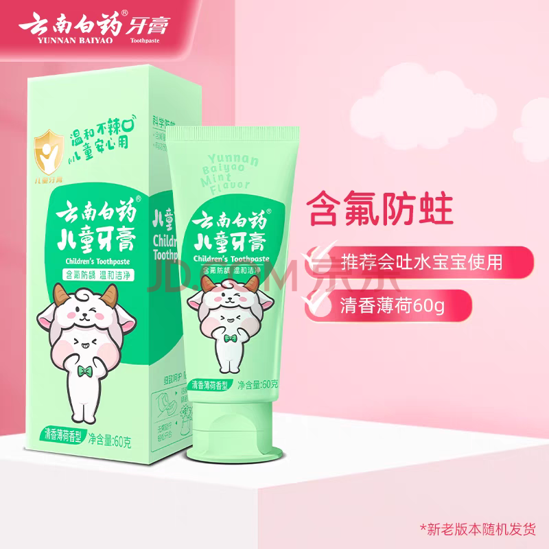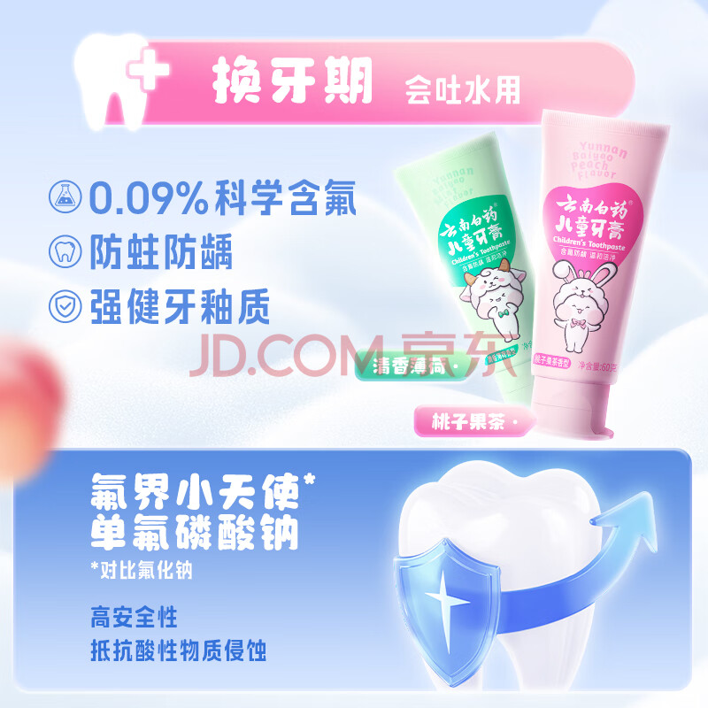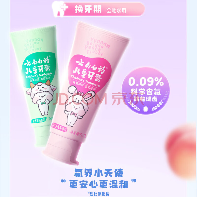 商品相册:云南白药6-12岁儿童牙膏薄荷味60g含氟防蛀固齿换牙期宝宝专研温和护口第