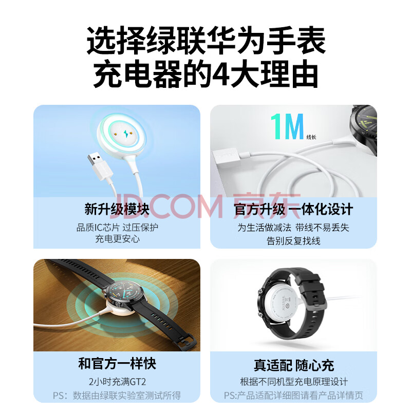 商品相册:绿联适用华为手表充电器磁吸式底座Watch/GT/GT2/2E/荣耀Magic/GSPro手表无线快充电线手表配件第