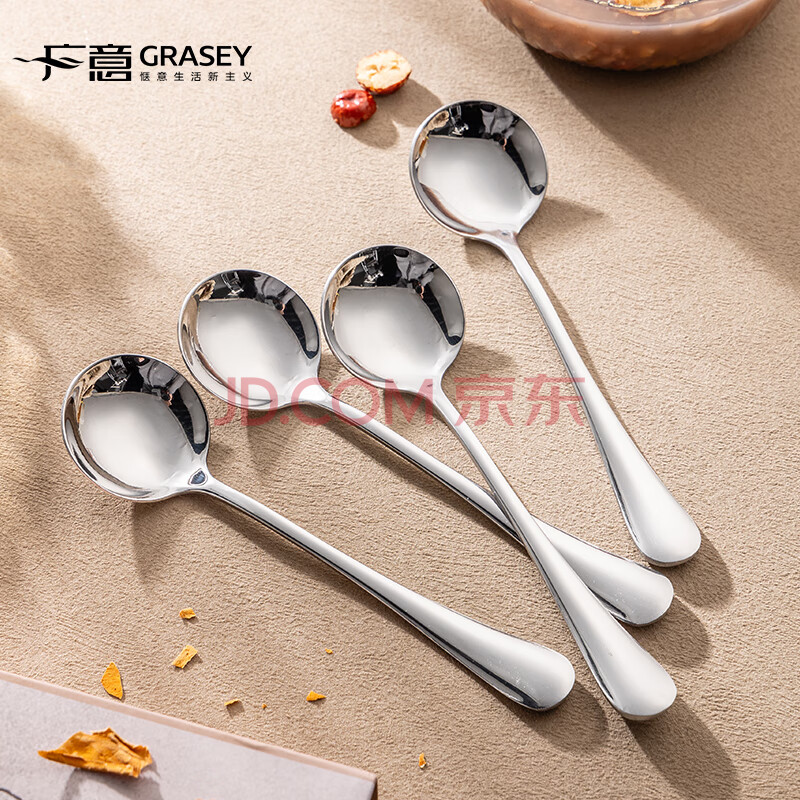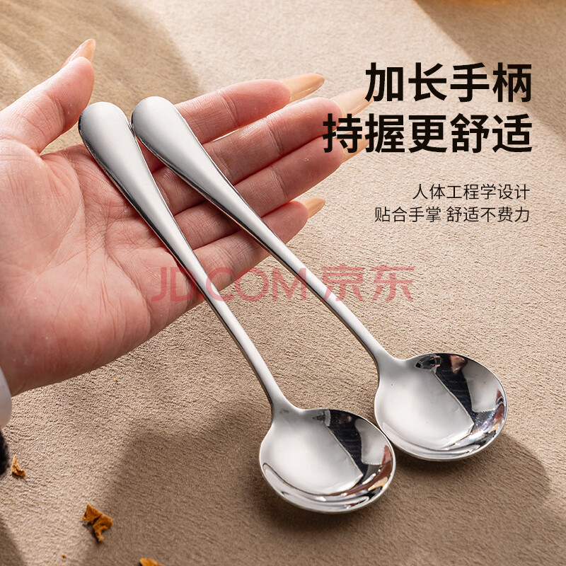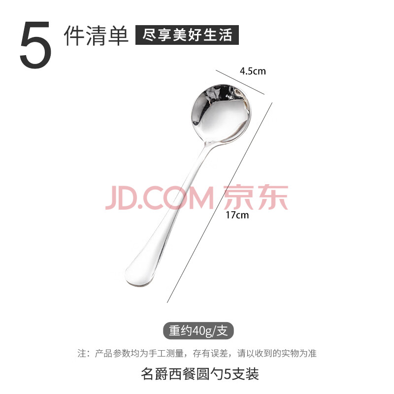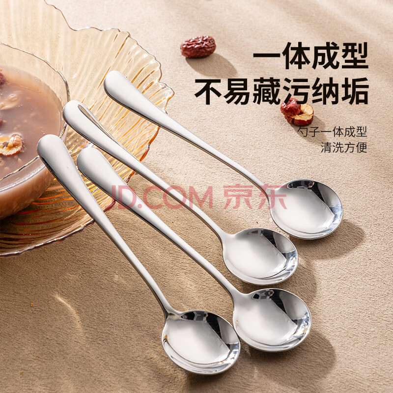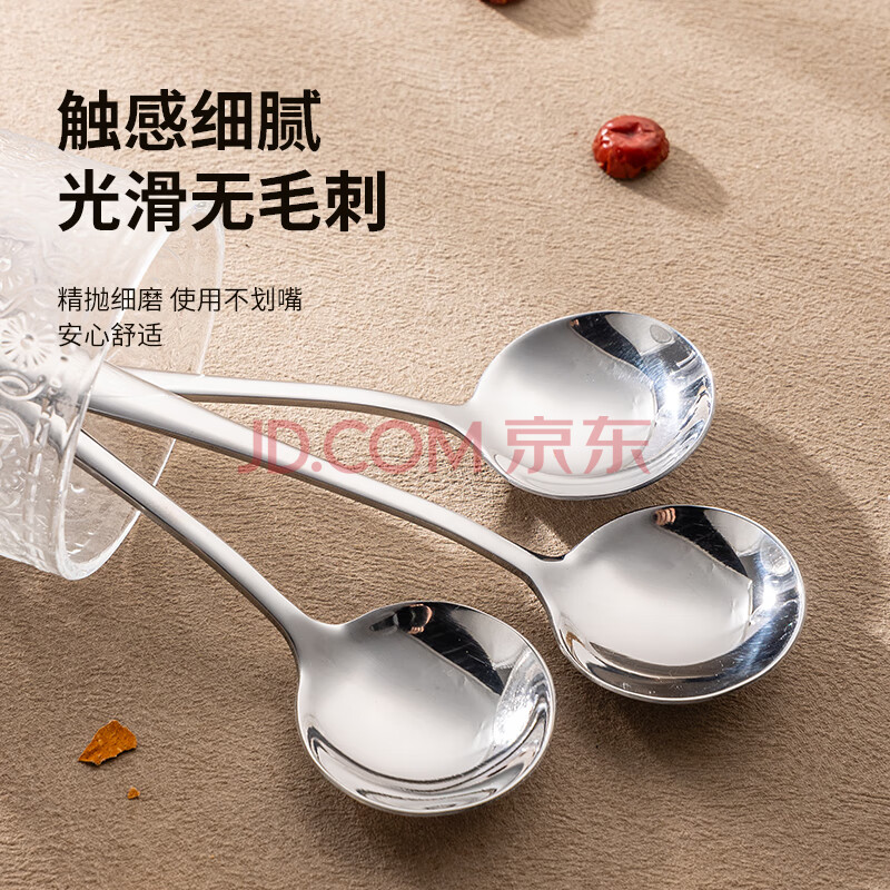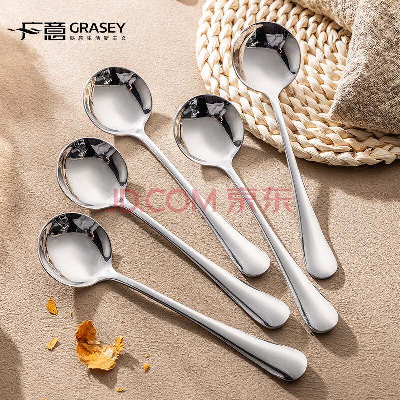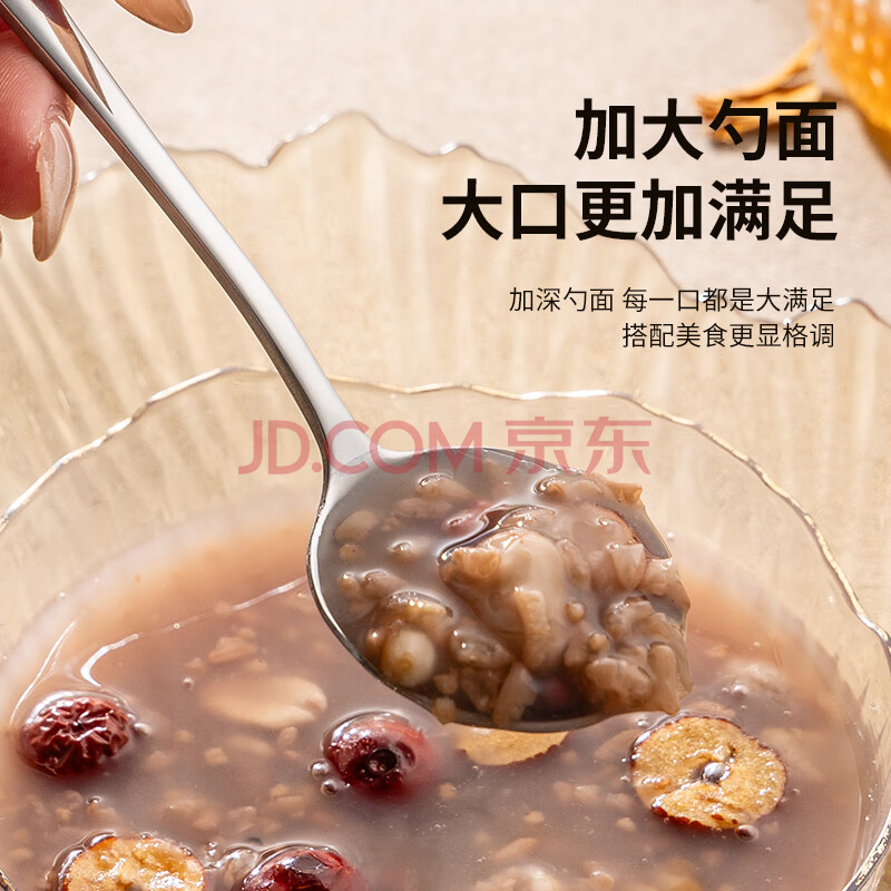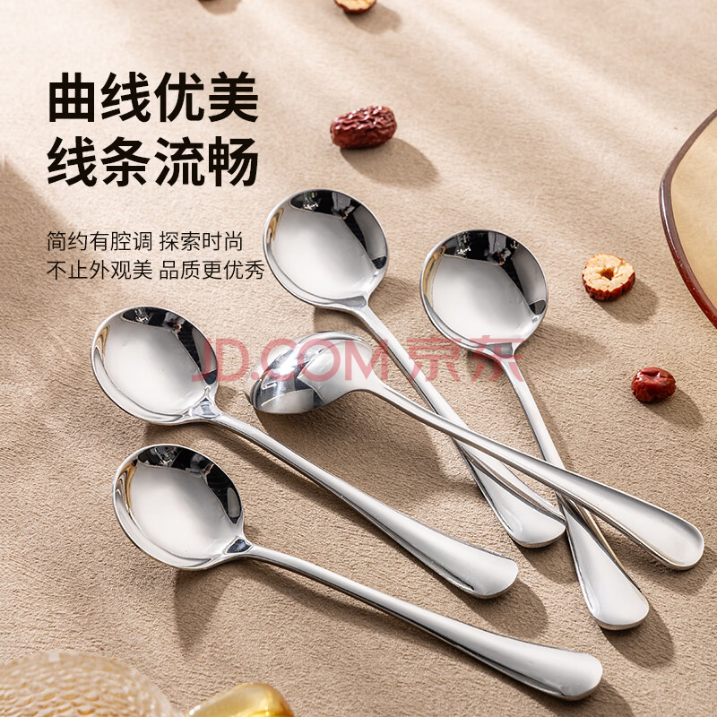 商品相册:广意加厚不锈钢餐勺儿童家用汤勺吃饭调羹西餐厅勺圆勺5支装 GY7511第