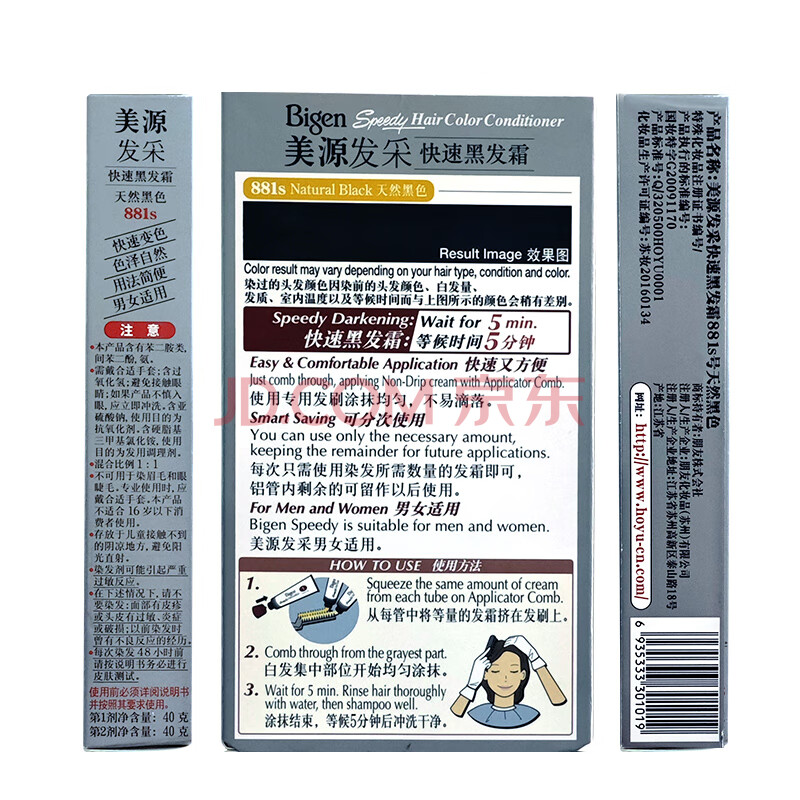 商品相册:Bigen美源宣若 发采快速黑发霜 160g(棕黑色 882s)国产加量 植萃盖白第