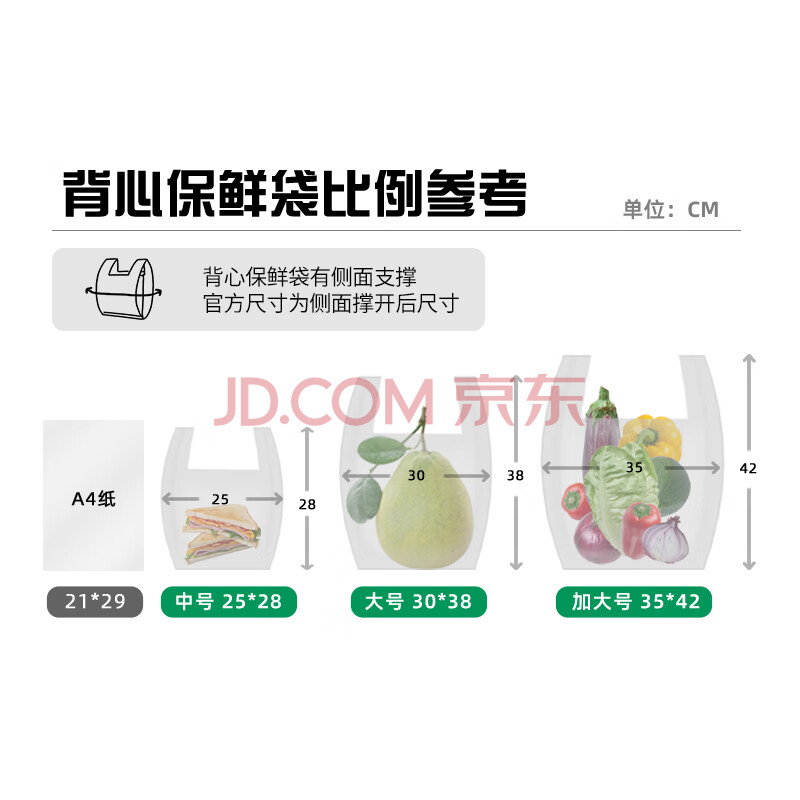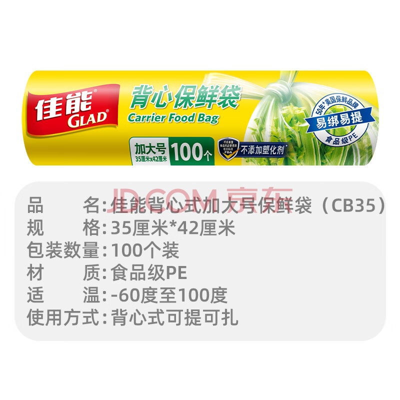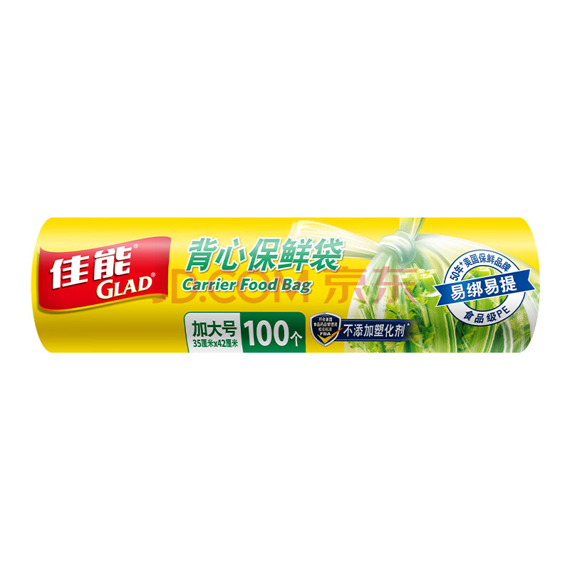 商品相册:佳能(Glad)食品级保鲜袋加大号100个 手提背心袋 保鲜食物生鲜蔬果 CB35第