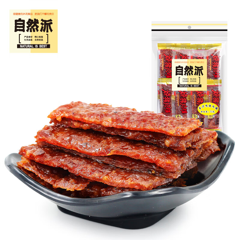商品相册:自然派肉干肉脯休闲零食广东老字号特产小吃蜜汁猪肉脯办公室零食75g/袋第