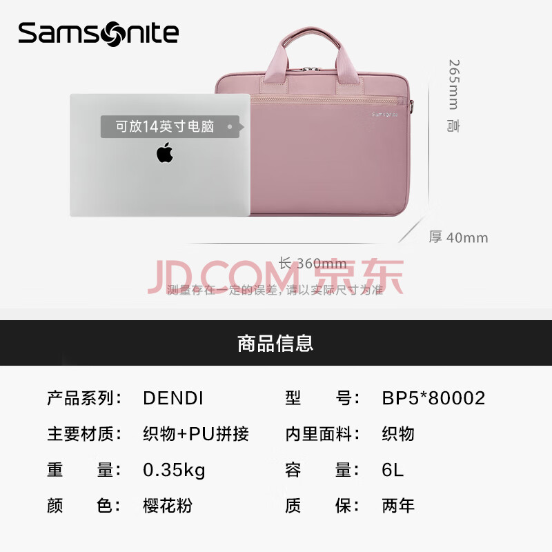商品相册:新秀丽(Samsonite)电脑包手提包女14英寸华为笔记本大容量商务公文包内胆包轻薄粉色第