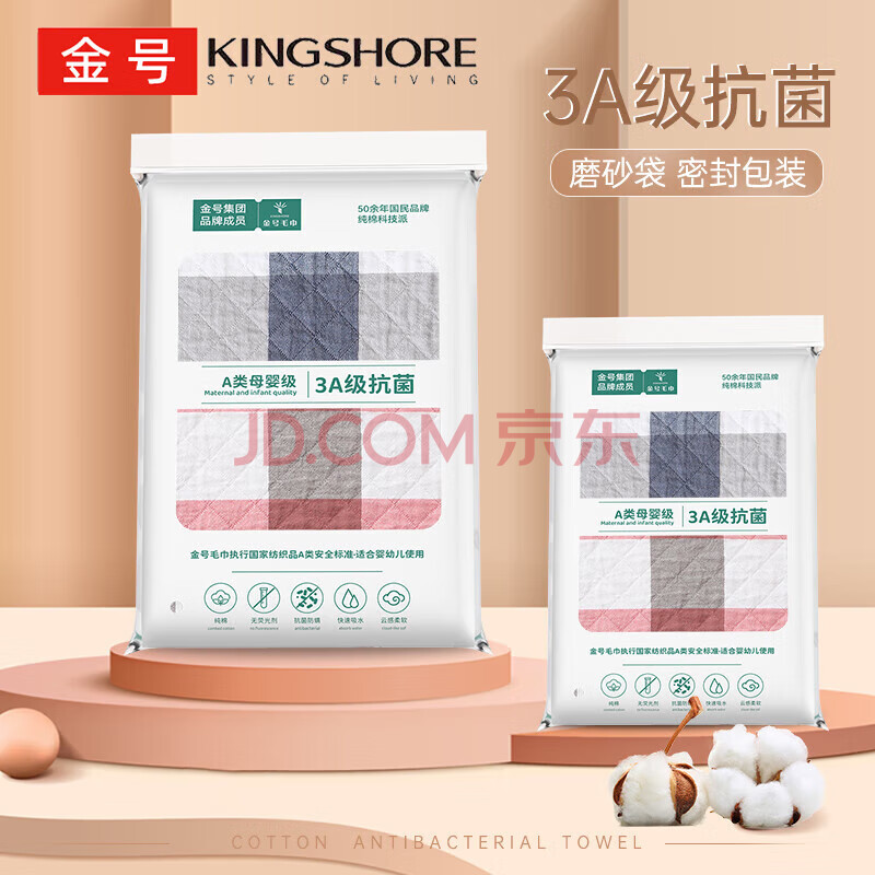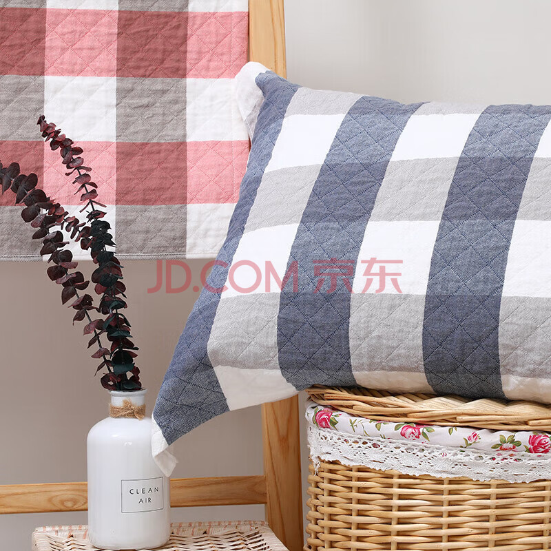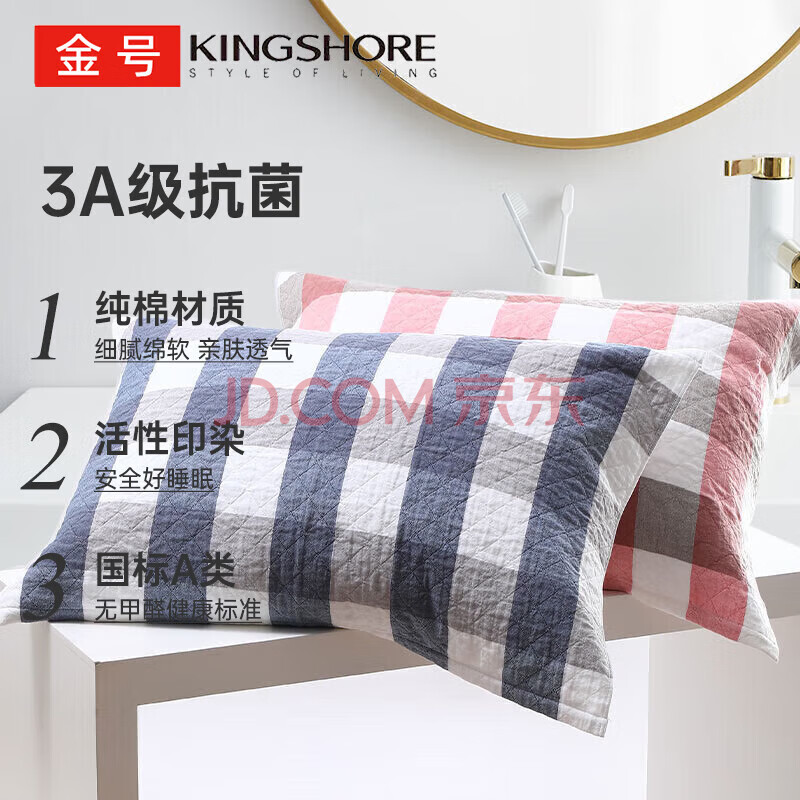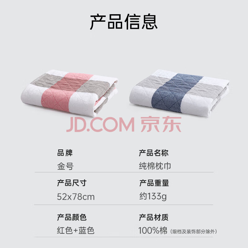 商品相册:金号全棉枕巾 红+蓝52*78cm133g双人枕头巾3A级抗菌三层对枕透气吸汗第1张/共8