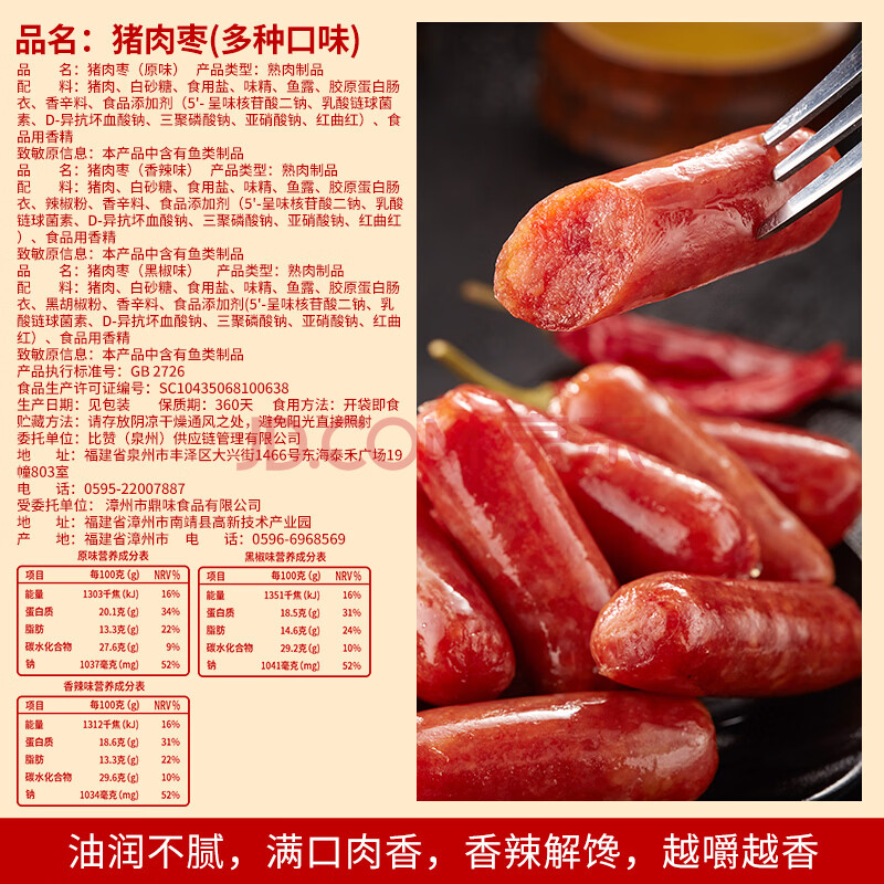 商品相册:比比赞(BIBIZAN)猪肉枣100g真空熟食即食小吃休闲零食品网红办公室小香肠烤肠第
