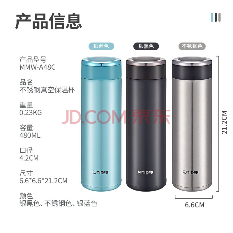 商品相册:虎牌(TIGER)保温保冷杯不锈钢水杯子MMW-A48C-AM银蓝色480ML第