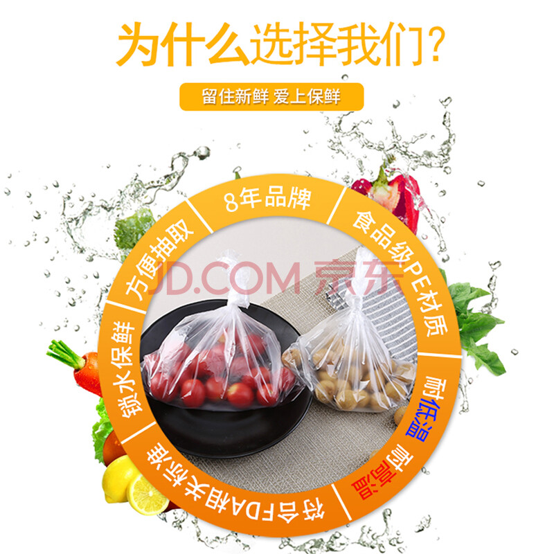 商品相册:京惠思创 保鲜袋【加厚PE材质 35*25cm 300只】超市连卷食品保鲜袋 JH0127第
