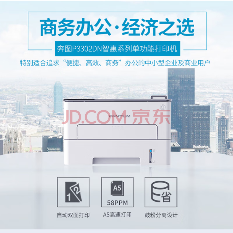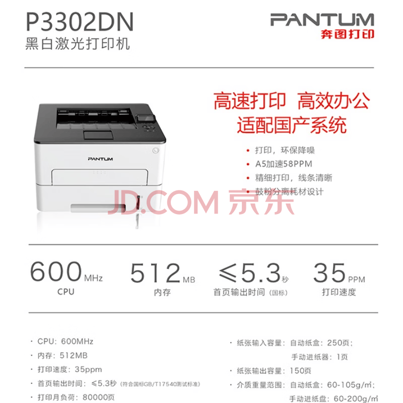 商品相册:奔图(PANTUM)黑白激光单功能打印机商务办公企业工作单位经济便捷高效自动双面国产麒麟windows P3302DN第