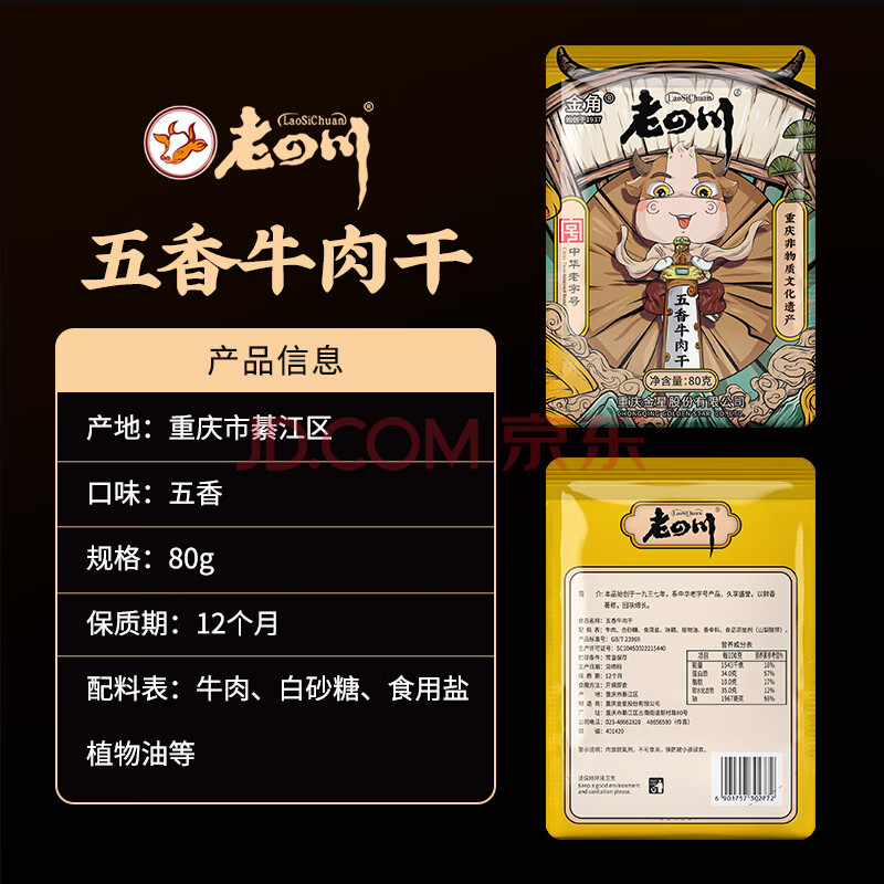 商品相册:老四川 五香牛肉干80g 休闲零食 四川特产金角中华老字号第
