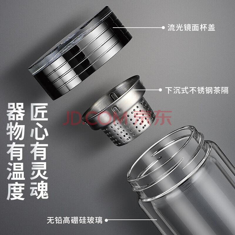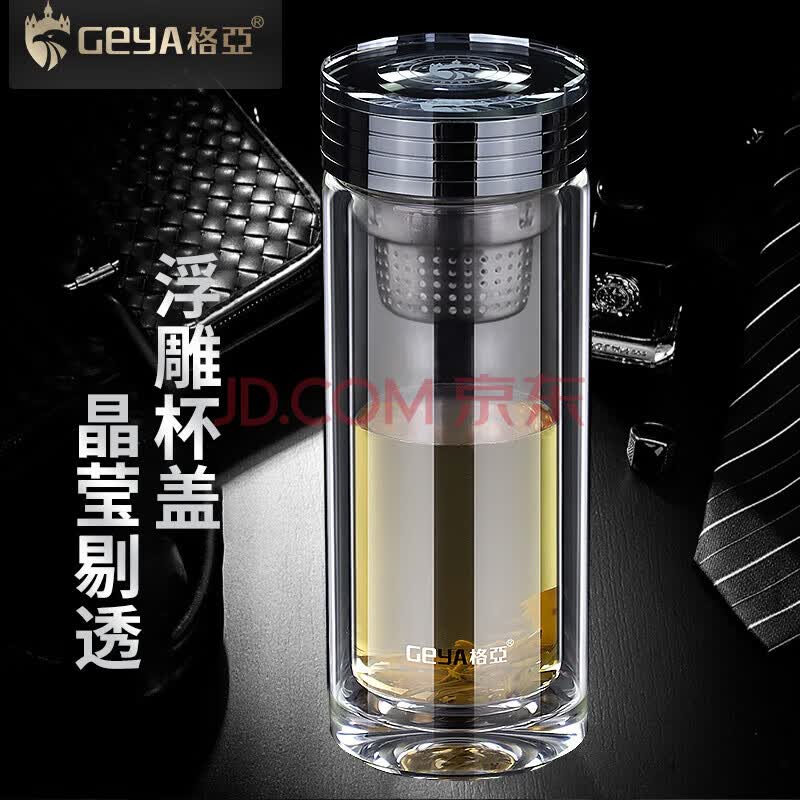 商品相册:格亚(GEYA)双层玻璃杯高端男士茶杯商务高透光泡茶杯耐热杯子办公室水杯定制第