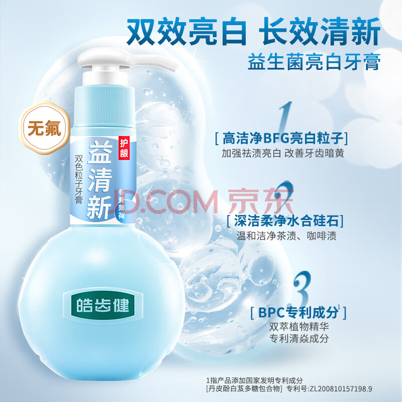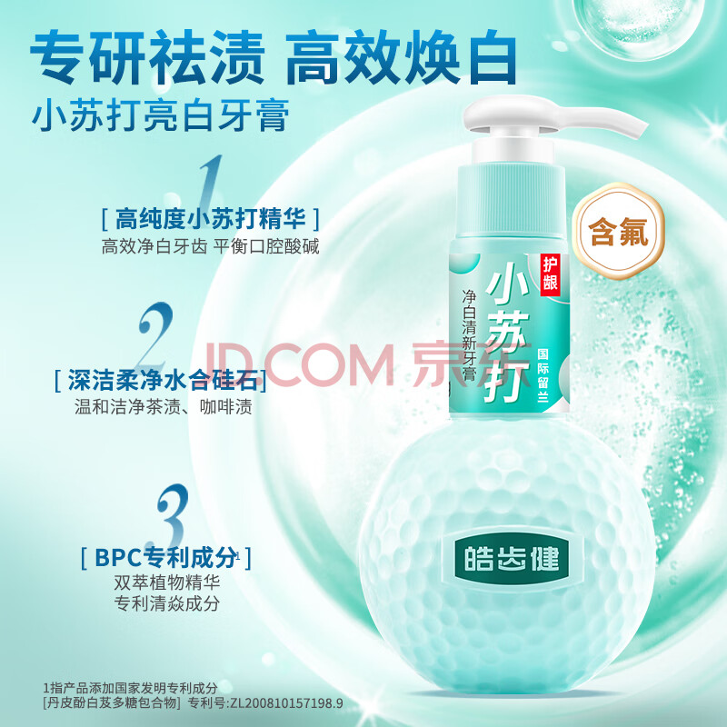 商品相册:皓齿健小苏打亮白按压式牙膏青少年成人清火含氟防蛀洁白平衡酸碱220g第