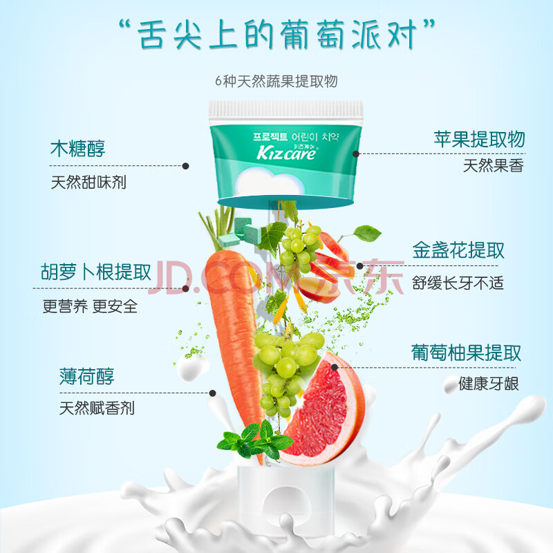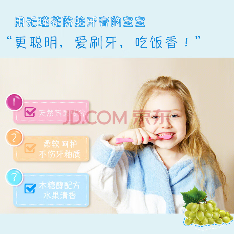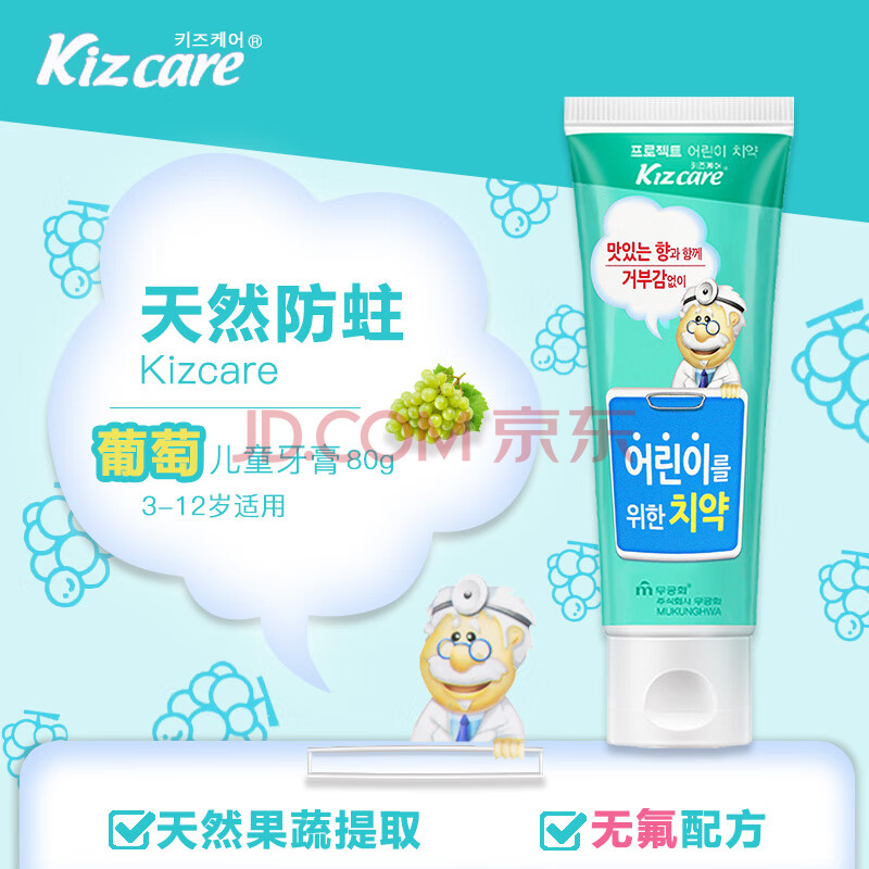 商品相册:無瑾花 韩国进口 儿童牙膏80g(葡萄味)天然果蔬无氟防蛀第