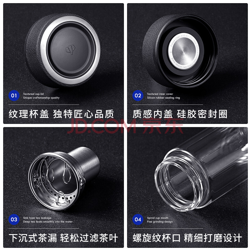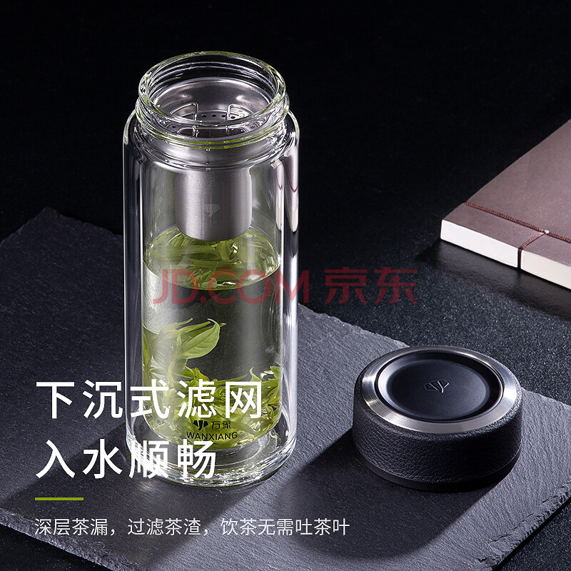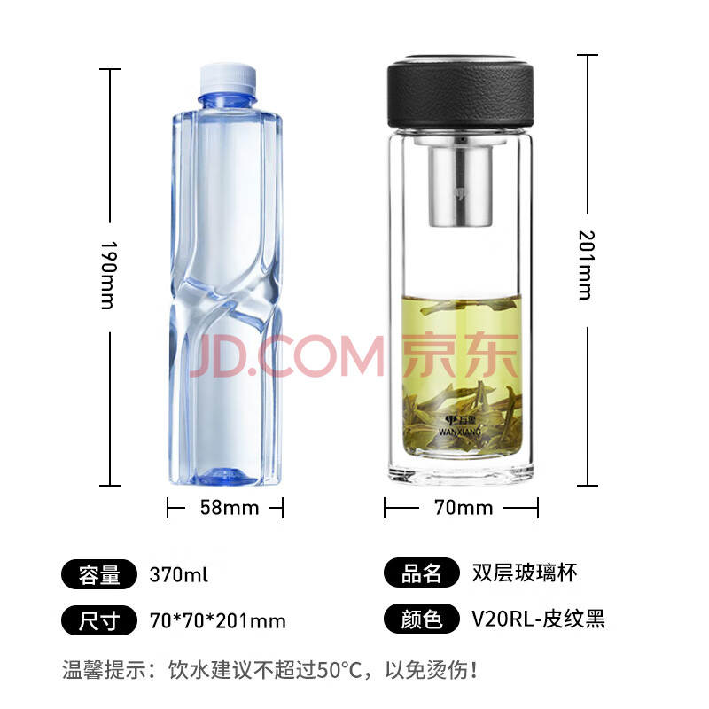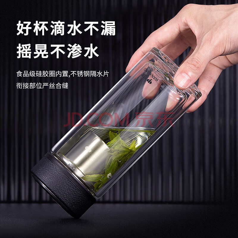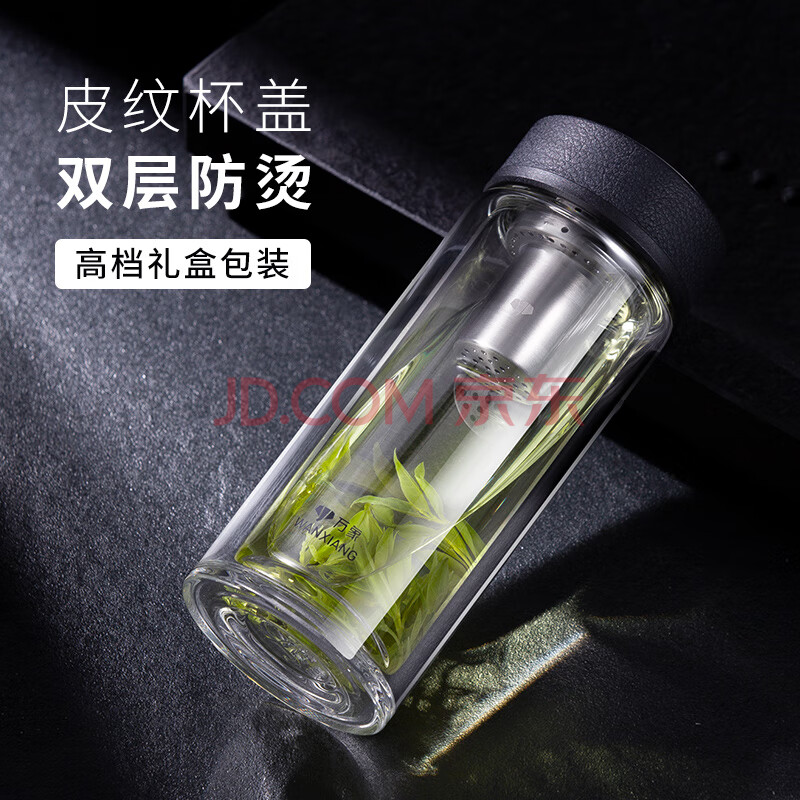 商品相册:万象(WANXIANG)双层玻璃杯经典皮纹V20RL商务办公礼盒泡茶杯370ML大容量家用水杯第