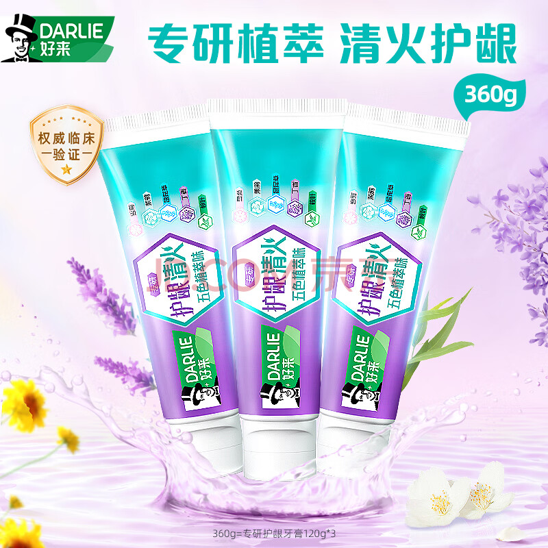 商品相册:好来(原黑人)专研护龈五色植萃清火牙膏 清火配方 清新 3支共360g第