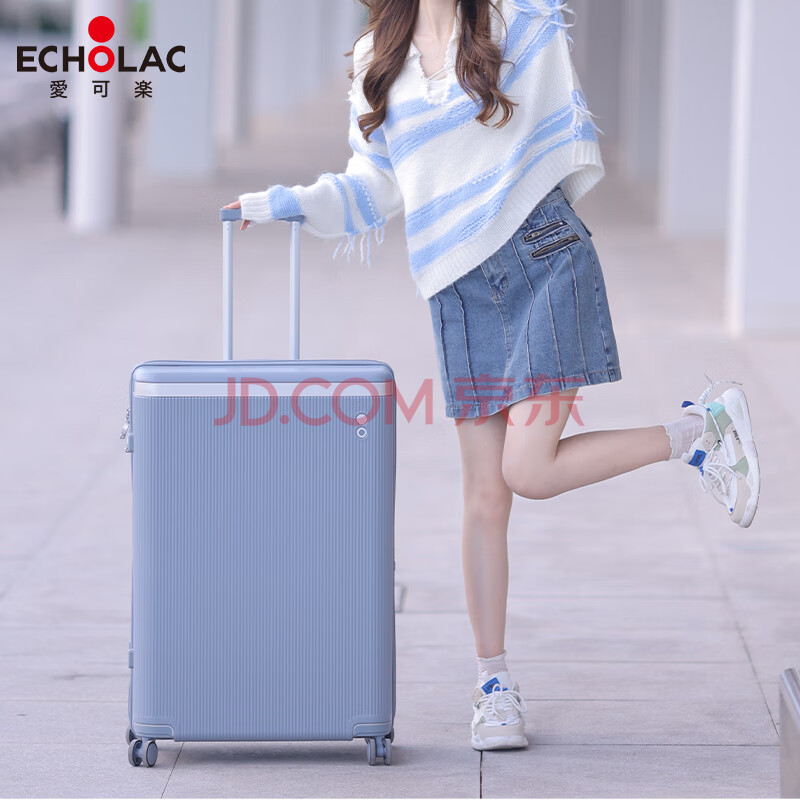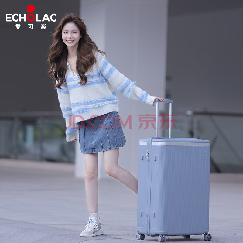 商品相册:爱可乐(Echolac)明星同款大容量行李箱出国旅行箱王朝防刮拉杆箱湖水蓝24吋PC142第