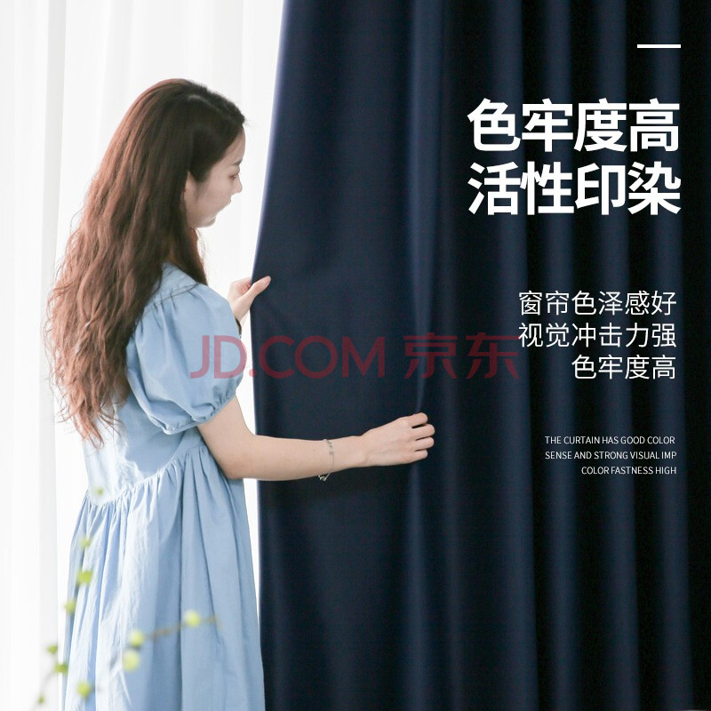 商品相册:铁骥 窗帘 全遮光成品窗帘布 卧室客厅飘窗遮光遮阳帘 高精密藏青挂钩式1.8米宽*2.4米高1片第