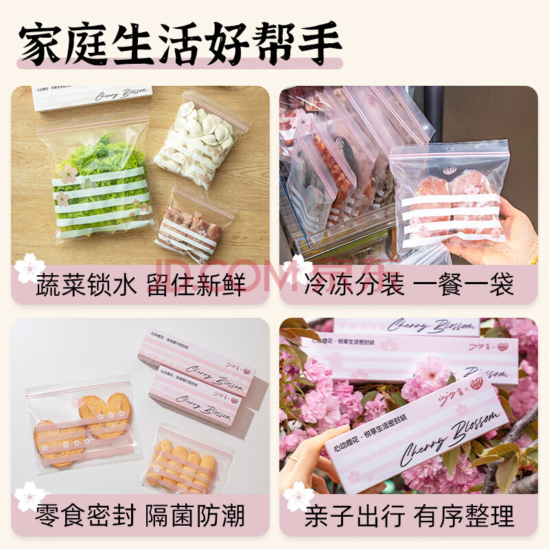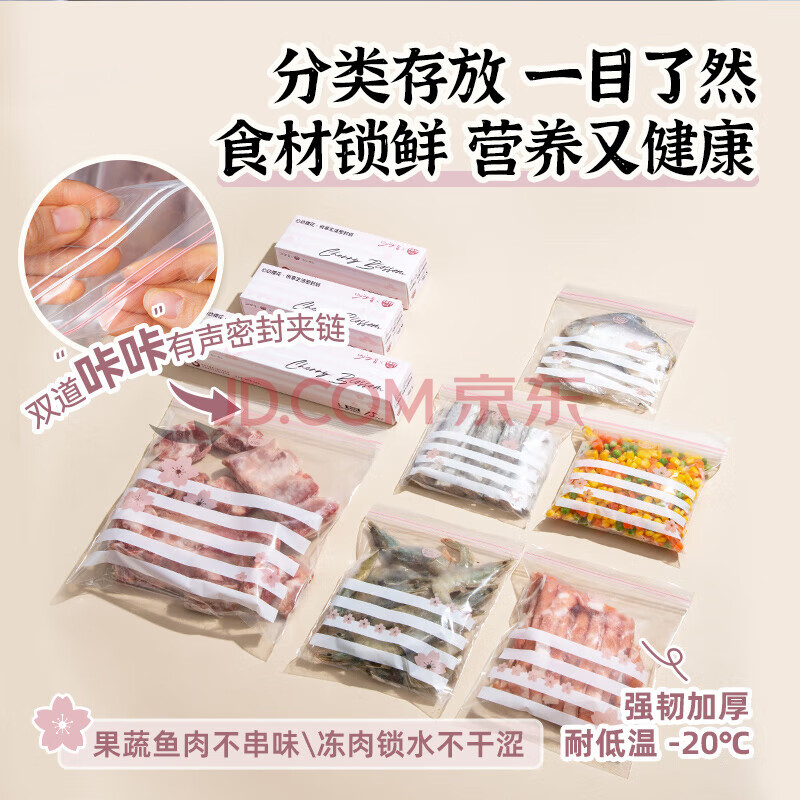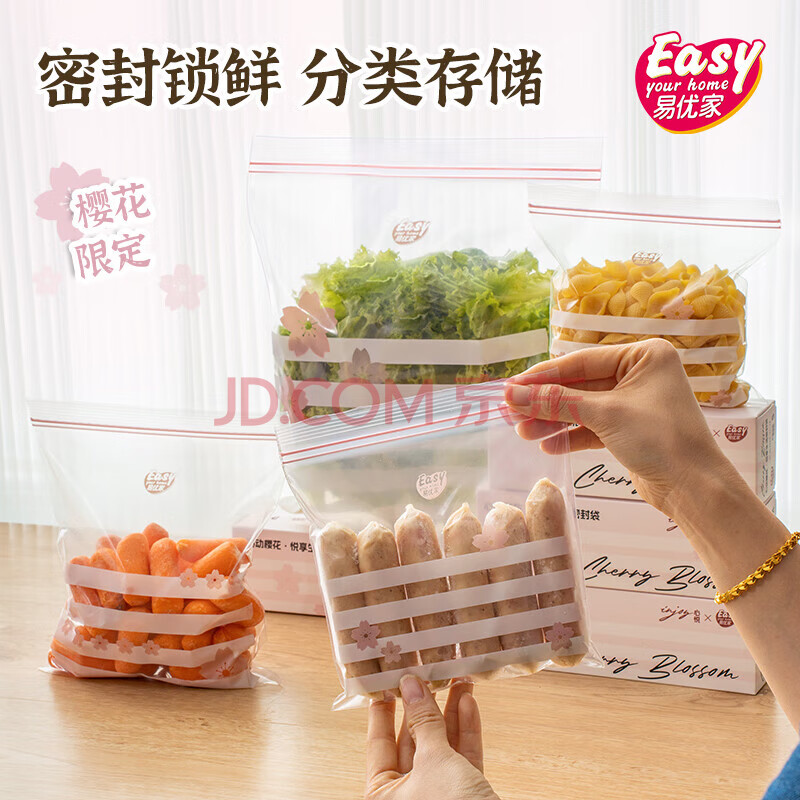商品相册:易优家保鲜袋食品级密封袋中小号70只防串味厨房冷冻袋野餐露营密袋第