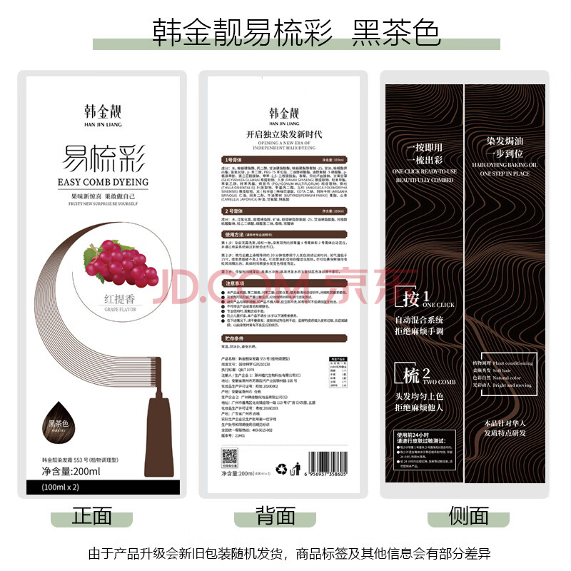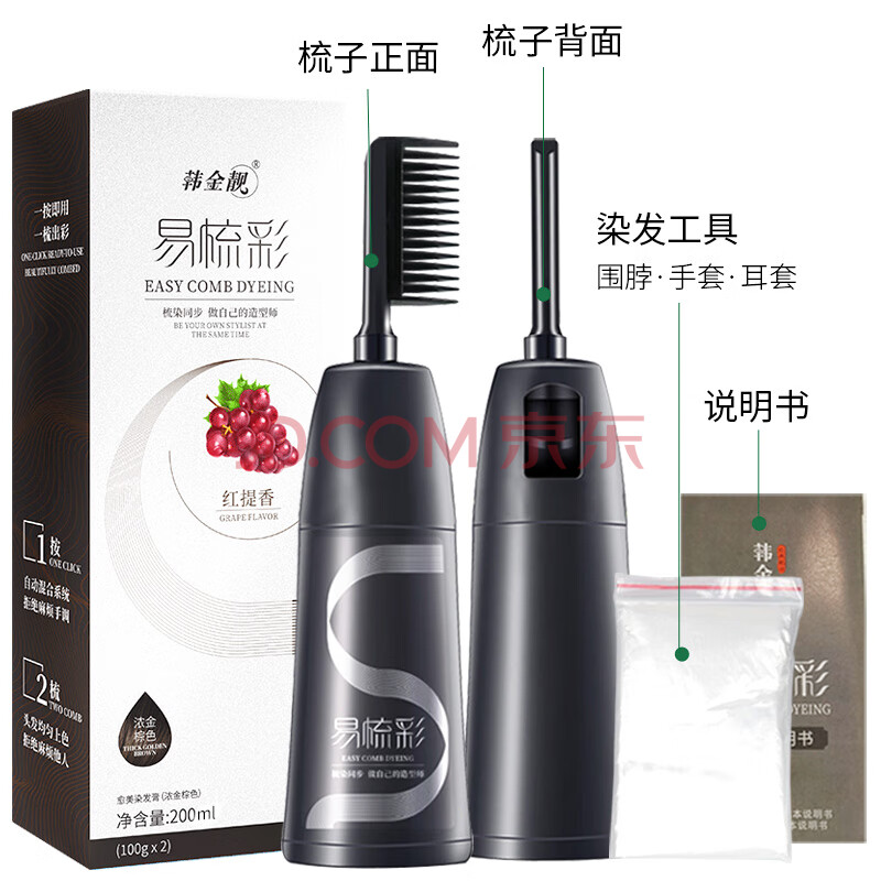 商品相册:韩金靓 易梳彩染发剂纯植物京东自营盖白头发黑茶色200ml男女2025流行色第
