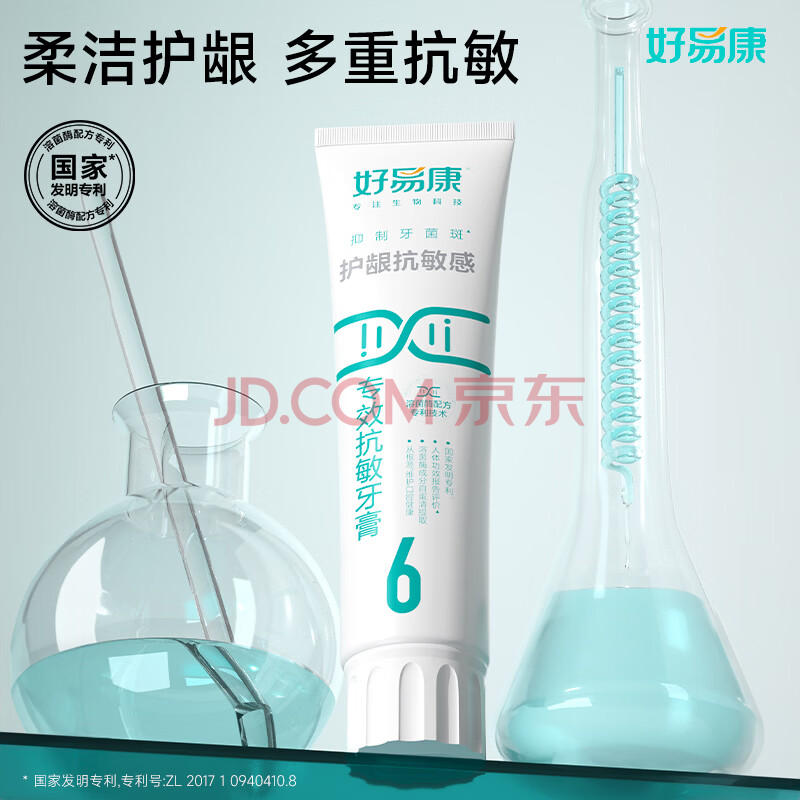 商品相册:好易康缓解牙齿敏感溶菌酶牙膏 专效抗敏改善牙菌斑改善菌群6号120g/支第