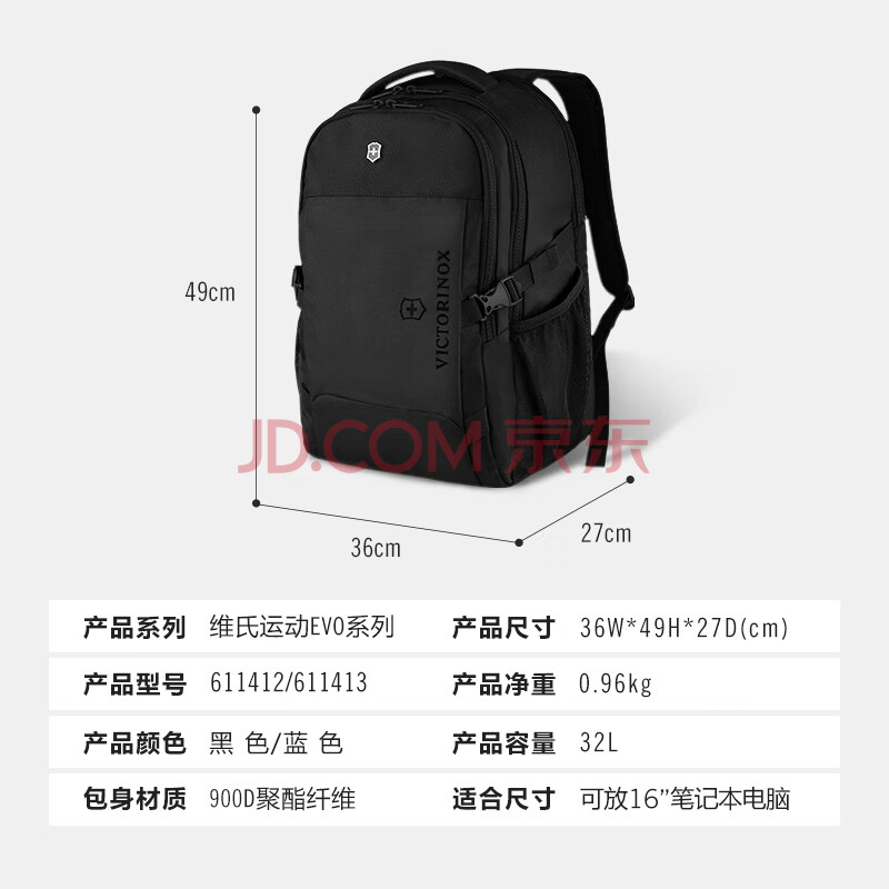商品相册:维氏(VICTORINOX)瑞士军刀EVO系列16英寸背包商务电脑包学生书包休闲双肩包611413第