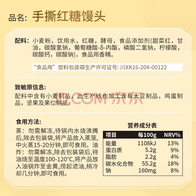 商品相册:融厨手撕红糖馒头810g(9个 儿童早餐半成品速食面点包子)第
